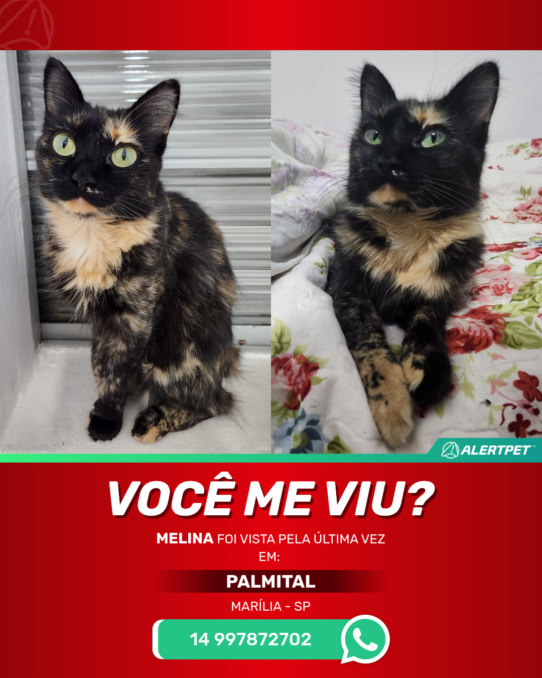 #AlertPet #Procurase #GatoDesaparecido #Marilia #ProcuramosMelina