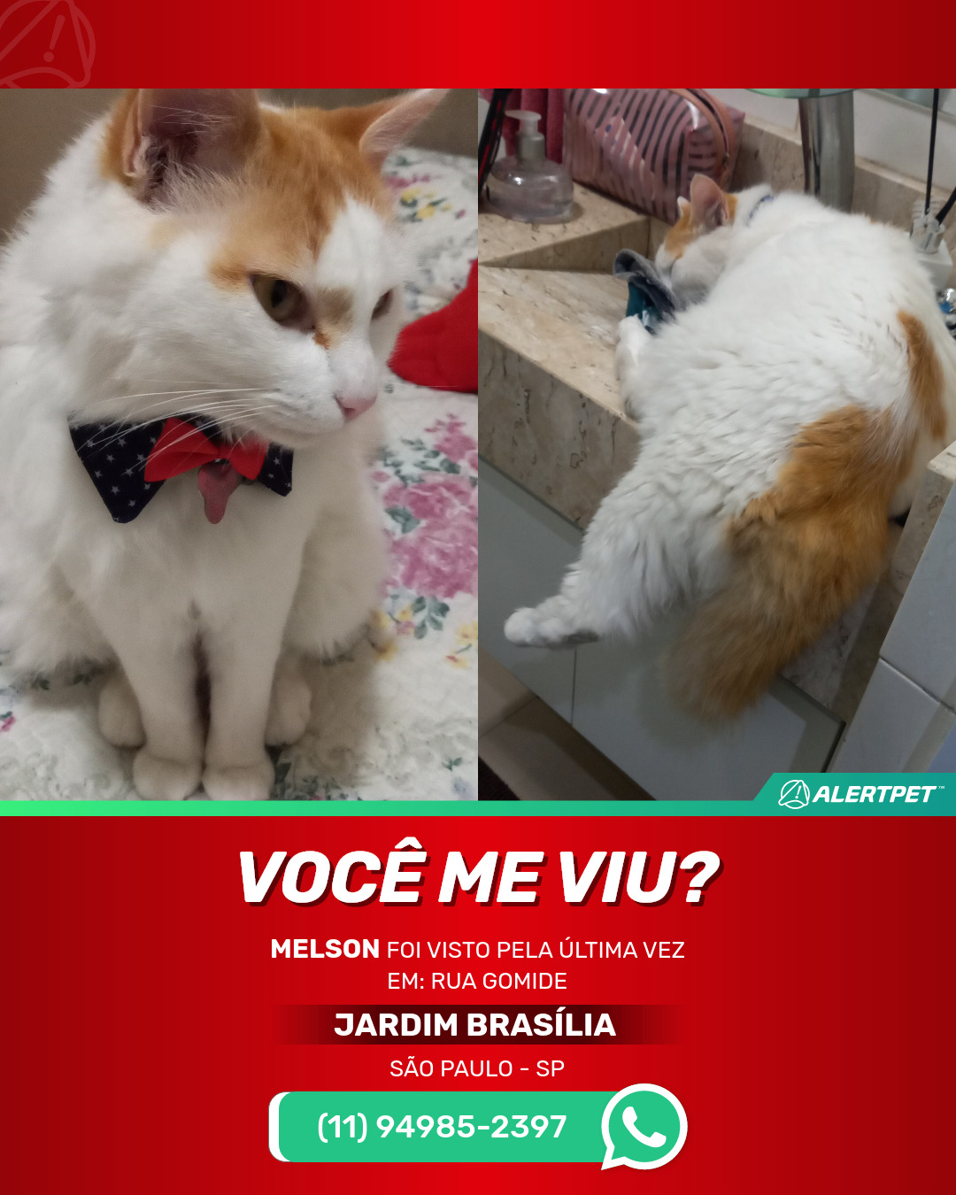#alertpet #procurase #GatoDesaparecido #São Paulo #procuramosMelson