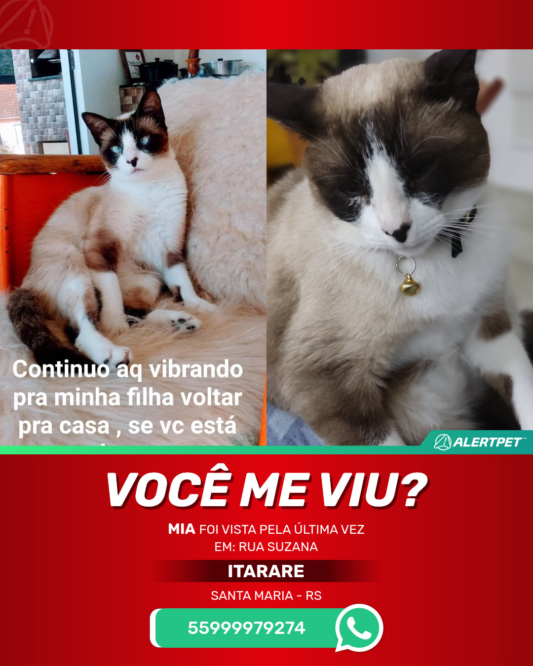 #AlertPet #Procurase #GatoDesaparecido #SantaMaria #ProcuramosMia