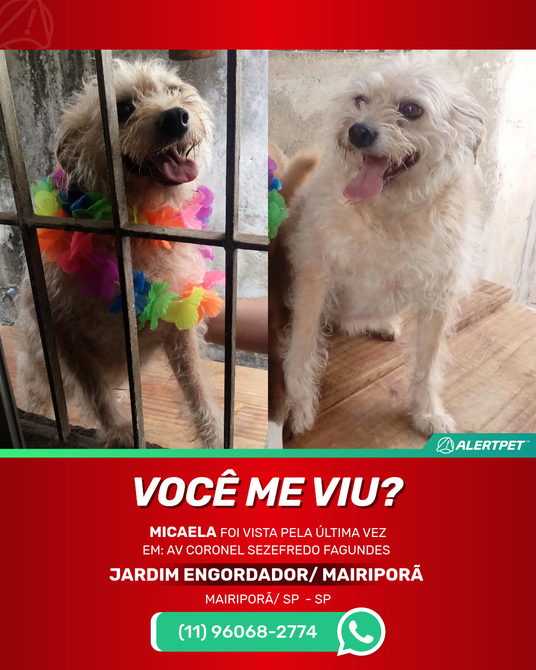 #alertpet #procurase #CachorroDesaparecido #Mairiporã/ SP #procuramosMicaela