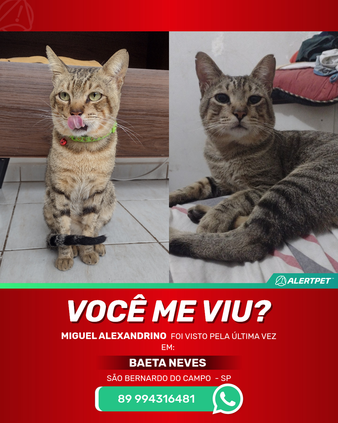 #AlertPet #Procurase #GatoDesaparecido #SaoBernardoDoCampo #ProcuramosMiguelAlexandrino