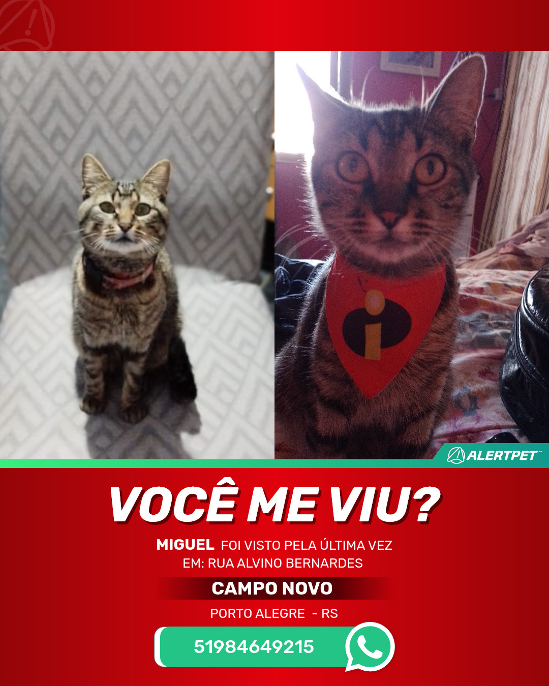 #AlertPet #Procurase #GatoDesaparecido #PortoAlegre #ProcuramosMiguel