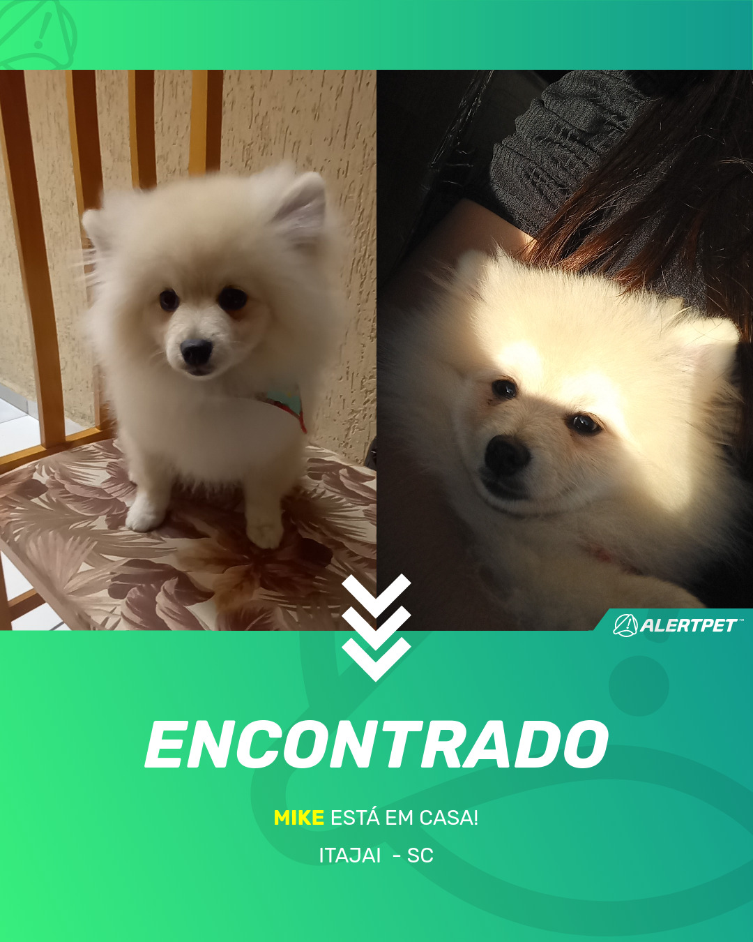 Depois de dois meses a cadelinha foi finalmente localizada graças a um anúncio da AlertPet