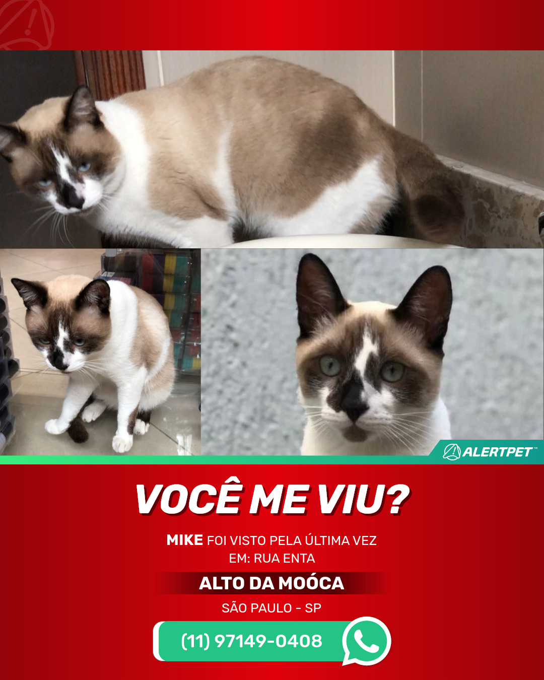 #alertpet #procurase #GatoDesaparecido #São paulo #procuramosMike