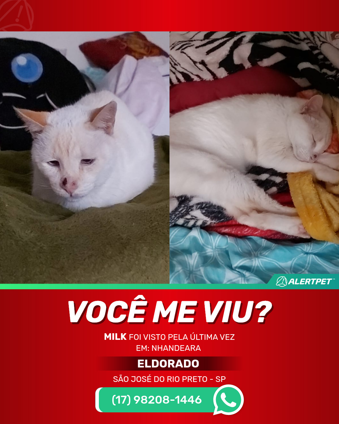 #AlertPet #Procurase #GatoDesaparecido #SAoJosEDoRioPreto #ProcuramosMilk