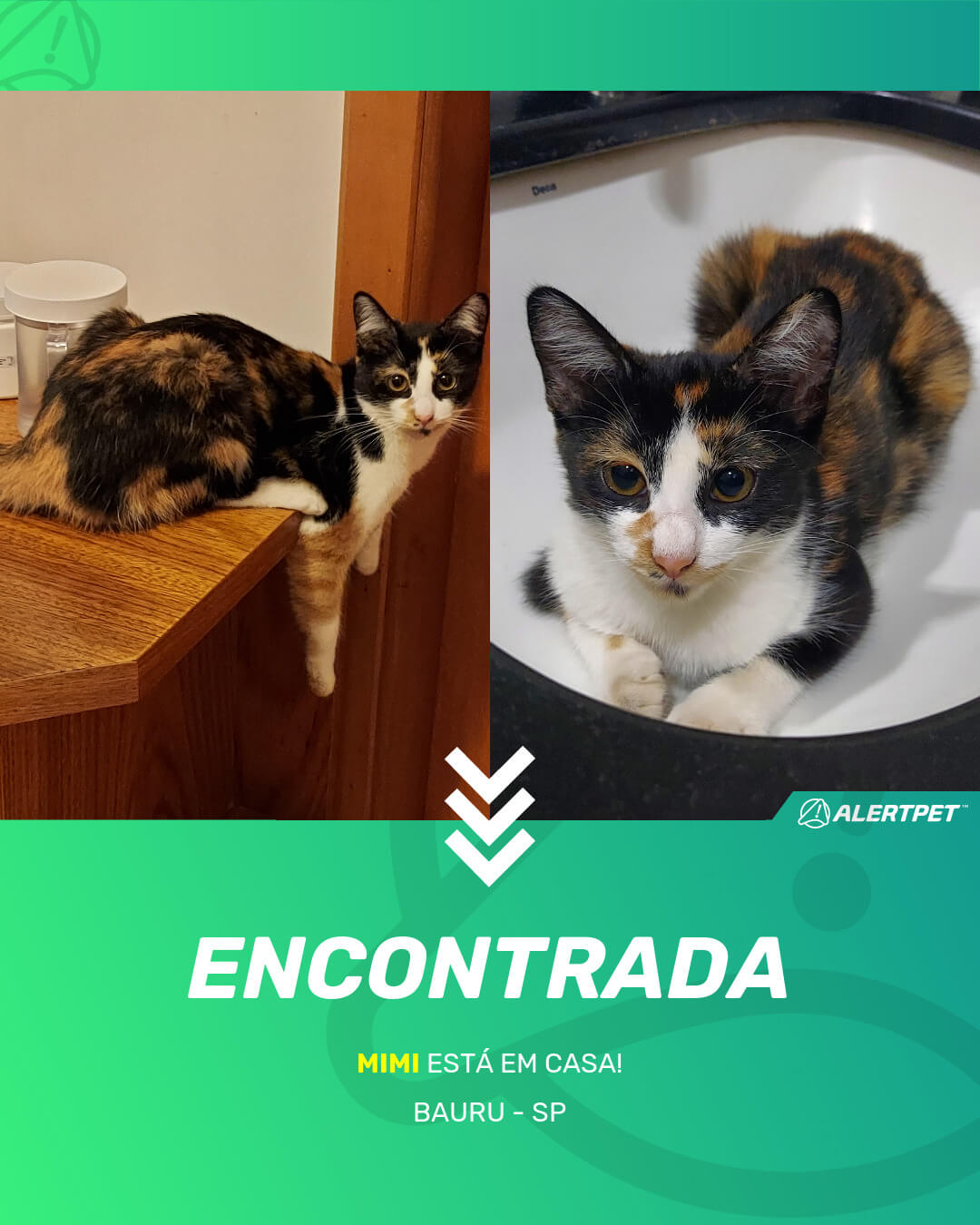 Depois de dois meses a cadelinha foi finalmente localizada graças a um anúncio da AlertPet