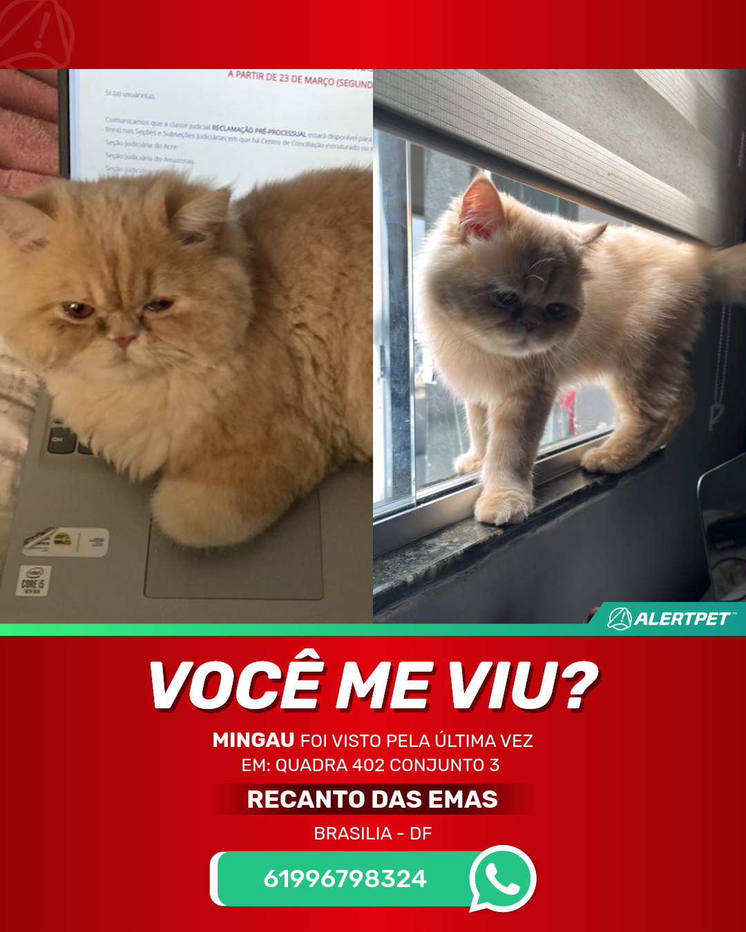 #AlertPet #Procurase #GatoDesaparecido #Brasilia #ProcuramosMingau