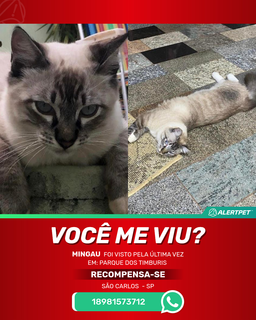 #AlertPet #Procurase #GatoDesaparecido #SaoCarlos #ProcuramosMingau