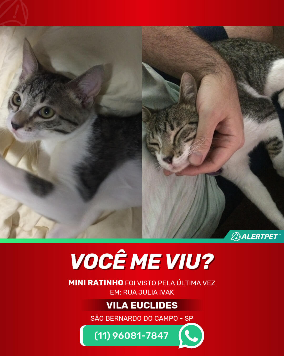 #alertpet #procurase #GatoDesaparecido #São Bernardo do Campo #procuramosMini Ratinho