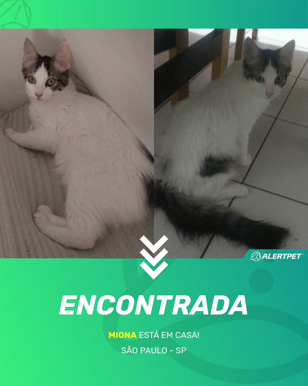 Depois de dois meses a cadelinha foi finalmente localizada graças a um anúncio da AlertPet