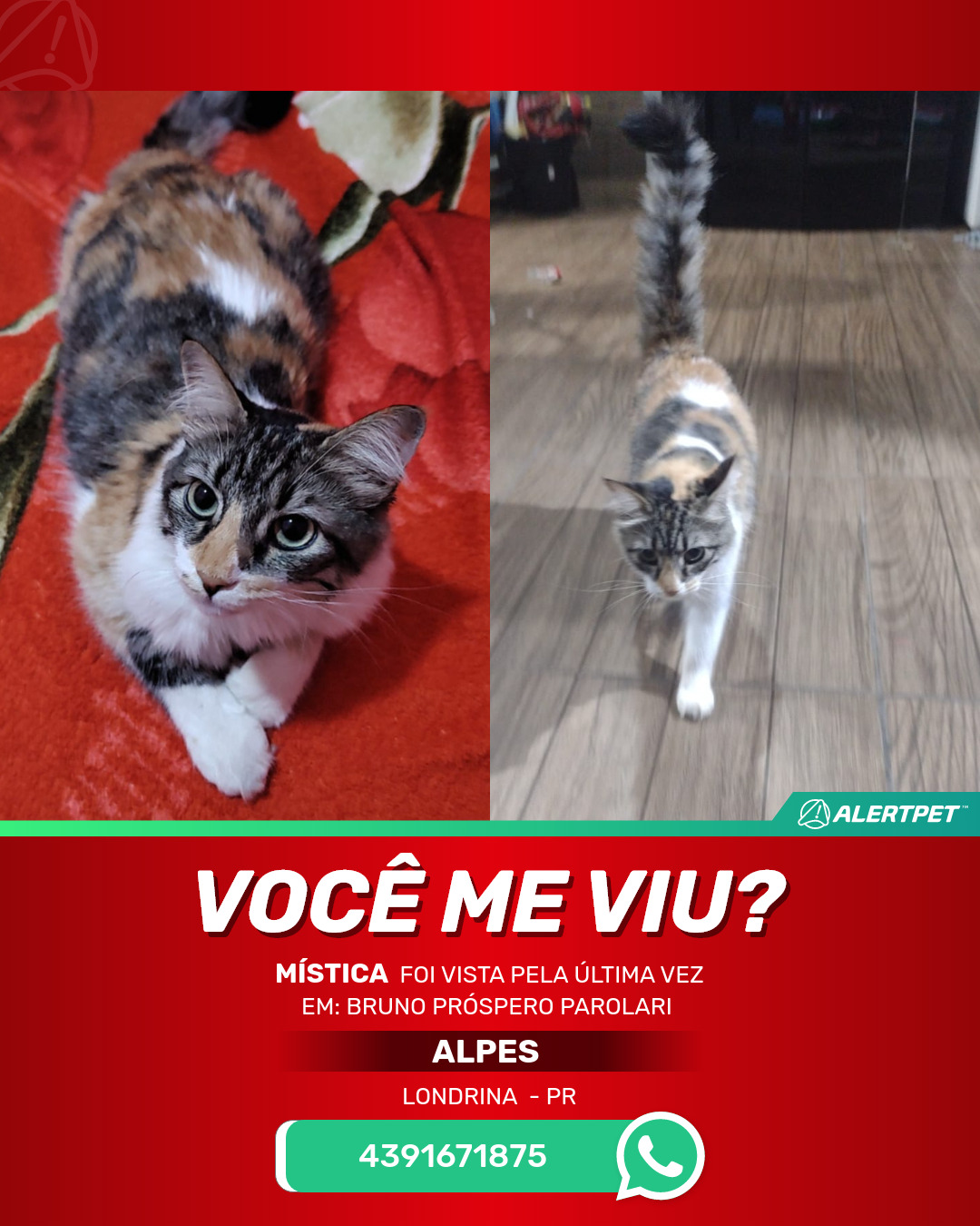 #AlertPet #Procurase #GatoDesaparecido #Londrina #ProcuramosMistica