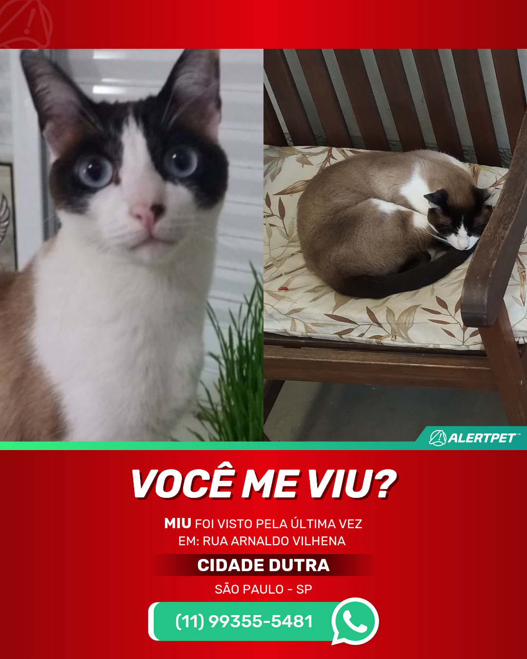 #alertpet #procurase #GatoDesaparecido #São Paulo #procuramosMiu