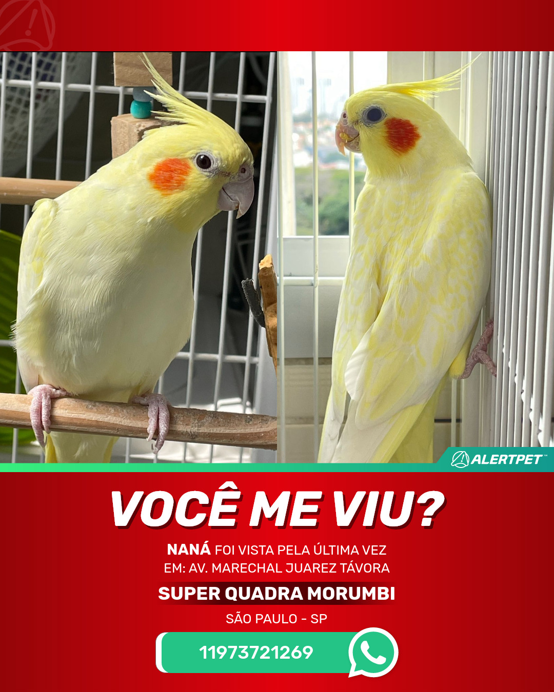 #AlertPet #Procurase #PassaroDesaparecido #SaoPaulo #ProcuramosNana