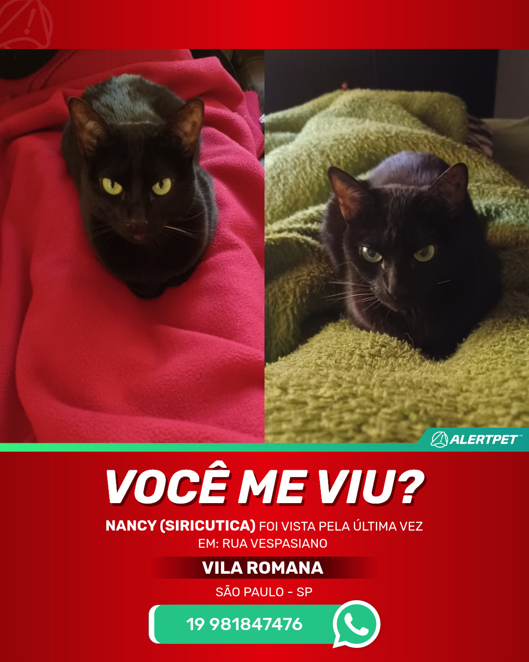 #AlertPet #Procurase #GatoDesaparecido #SaoPaulo #ProcuramosNancy(siricutica)