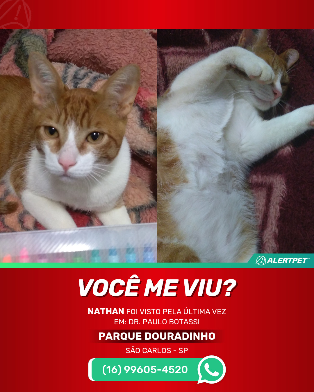 #alertpet #procurase #GatoDesaparecido #São Carlos #procuramosNathan