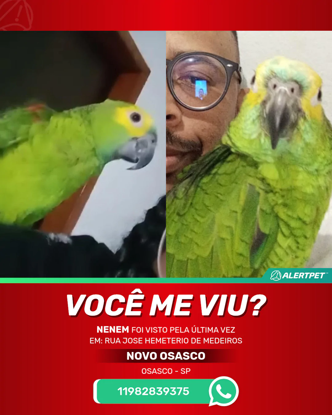 #AlertPet #Procurase #PassaroDesaparecido #Osasco #ProcuramosNenem