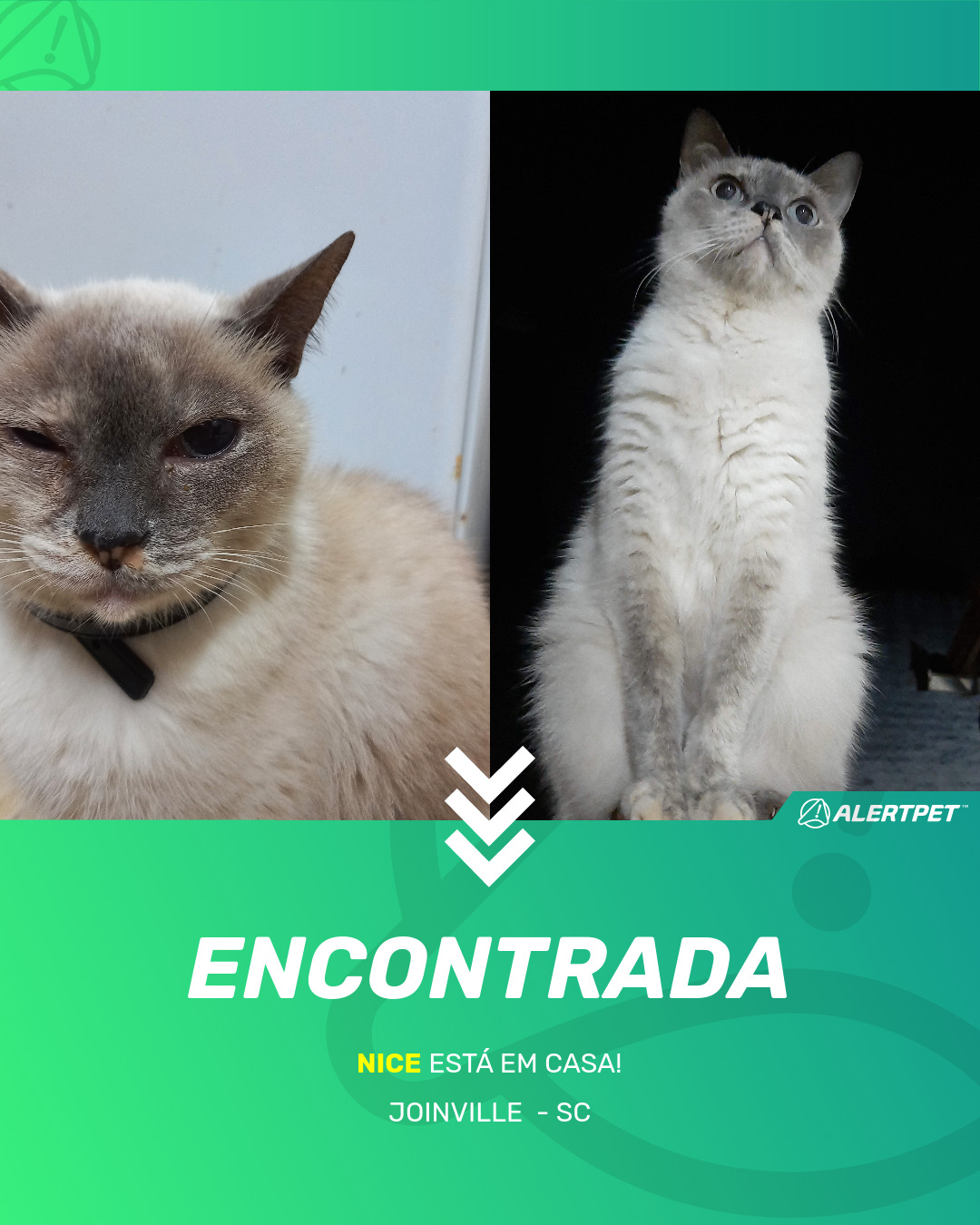 Depois de dois meses a cadelinha foi finalmente localizada graças a um anúncio da AlertPet