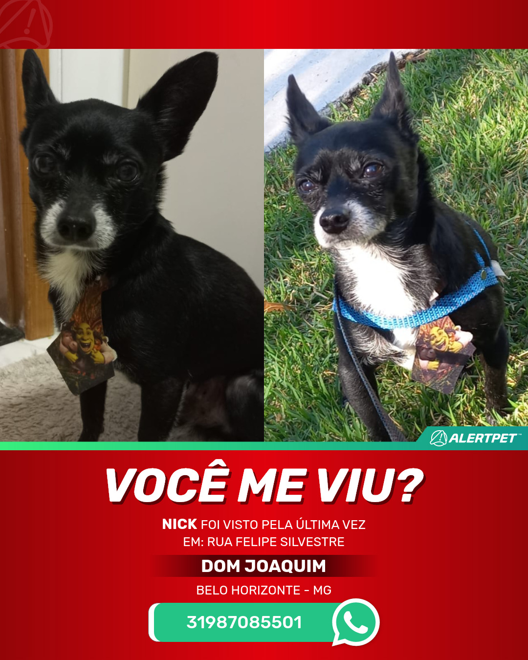 #AlertPet #Procurase #CachorroDesaparecido #BeloHorizonte #ProcuramosNick