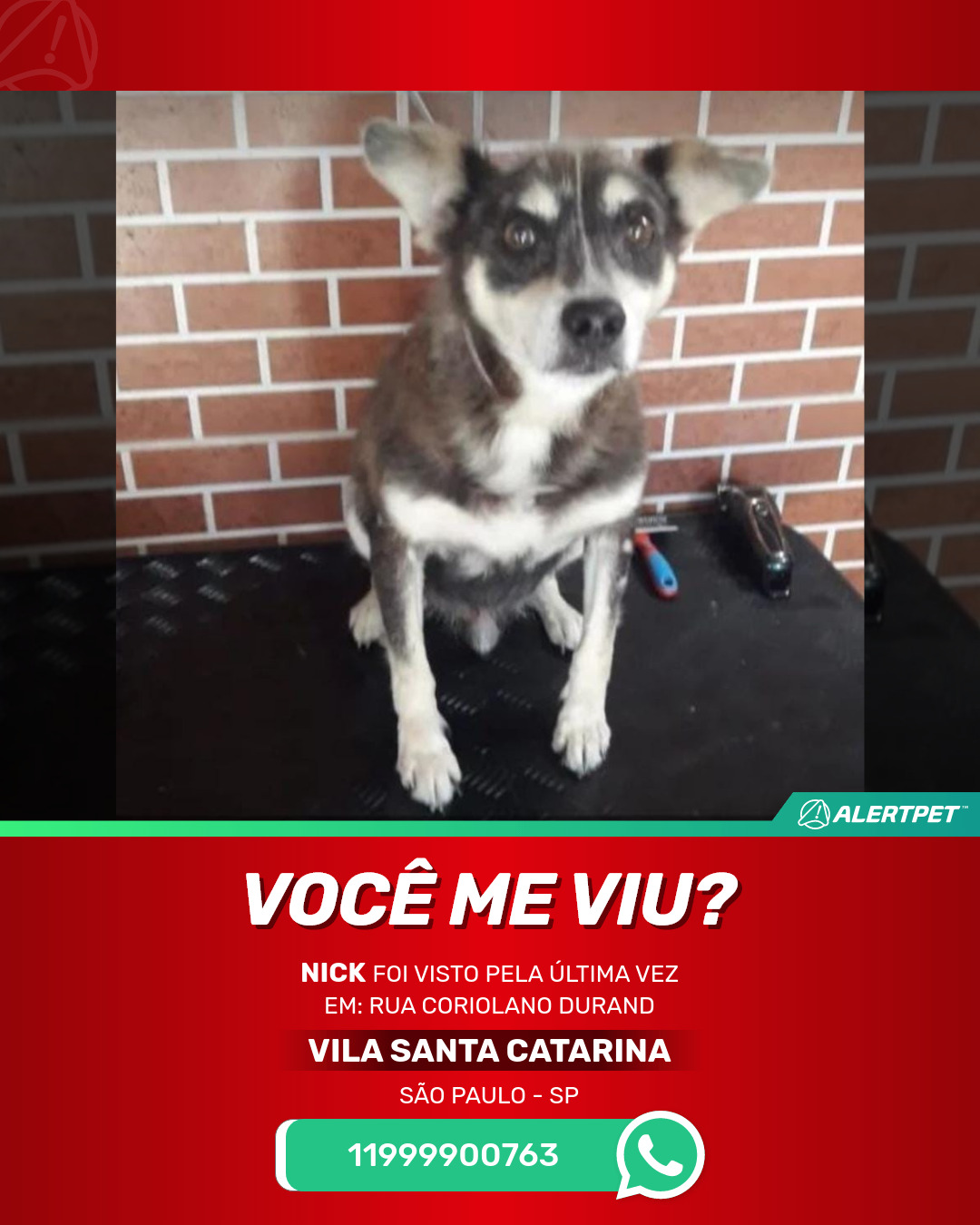 #alertpet #procurase #CachorroDesaparecido #São Paulo #procuramosNick