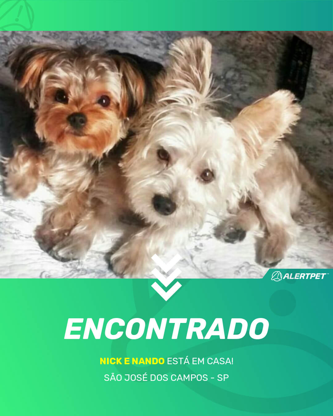 Depois de dois meses a cadelinha foi finalmente localizada graças a um anúncio da AlertPet