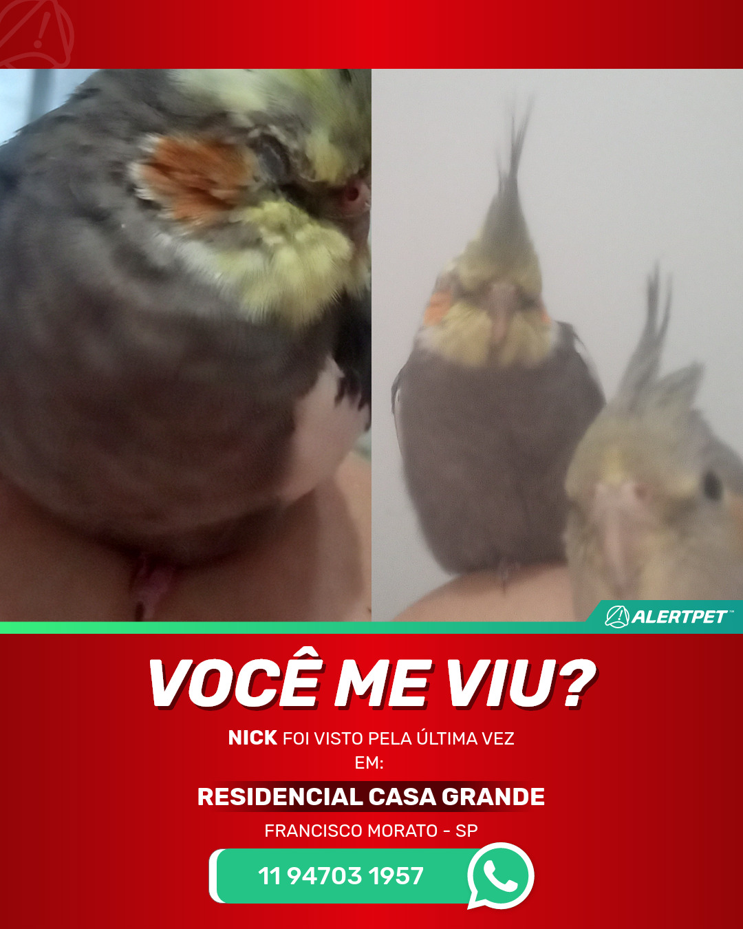 #AlertPet #Procurase #PassaroDesaparecido #FranciscoMorato #ProcuramosNick