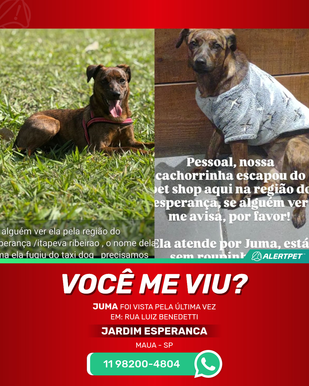 Caso tenha informações de um pet desaparecido comunicar imediatamente os tutores pelo telefone que está no anúncio.