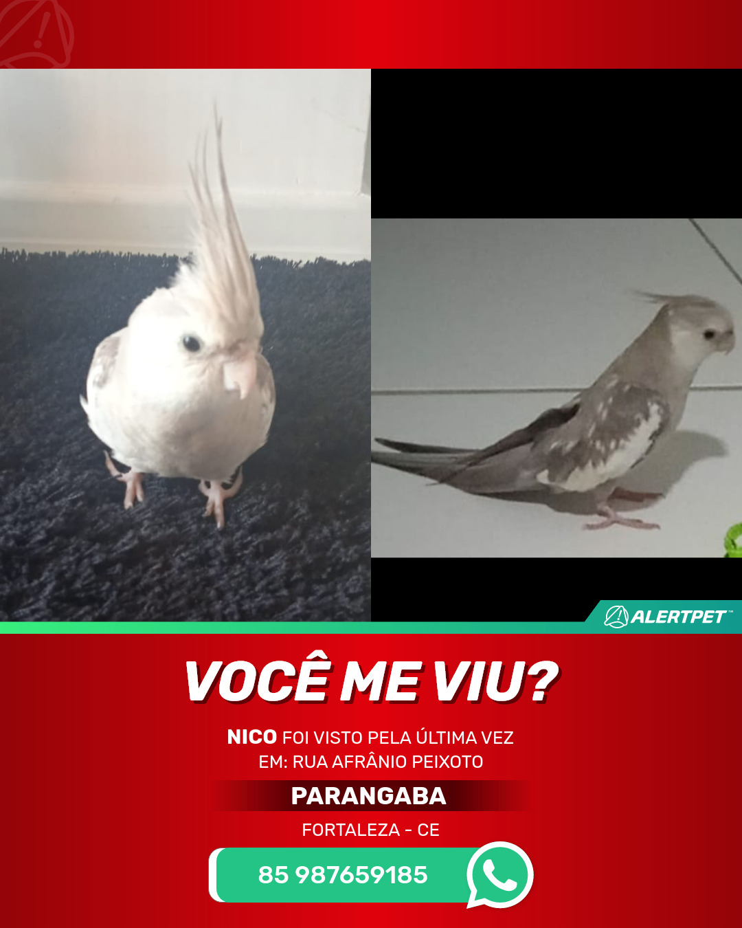 #alertpet #procurase #PássaroDesaparecido #Fortaleza #procuramosNico