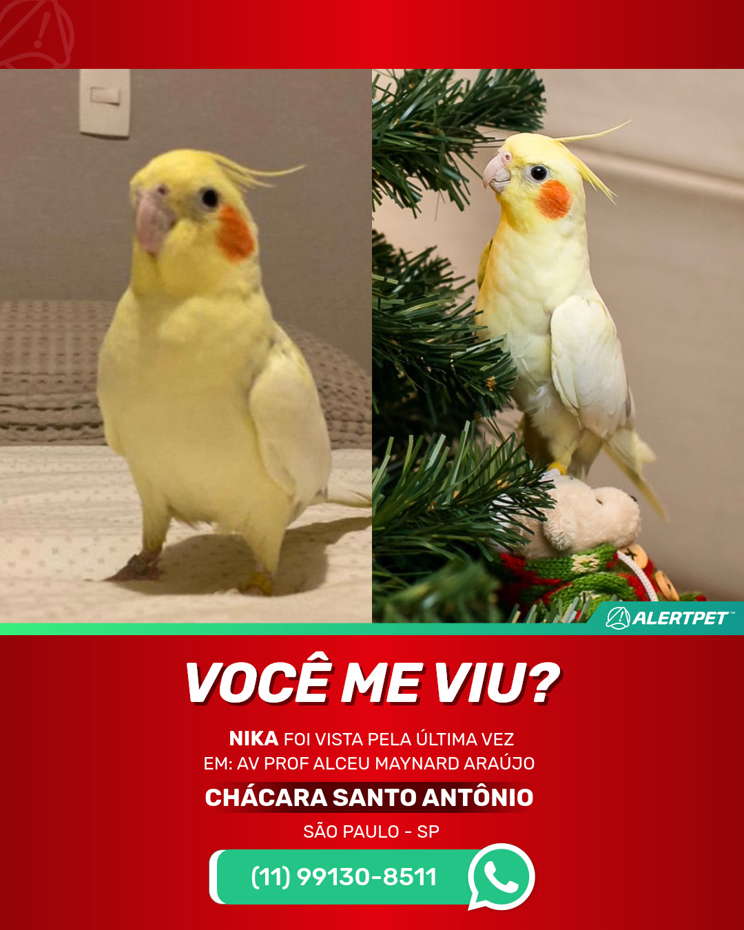 #alertpet #procurase #PássaroDesaparecido #São Paulo #procuramosNika
