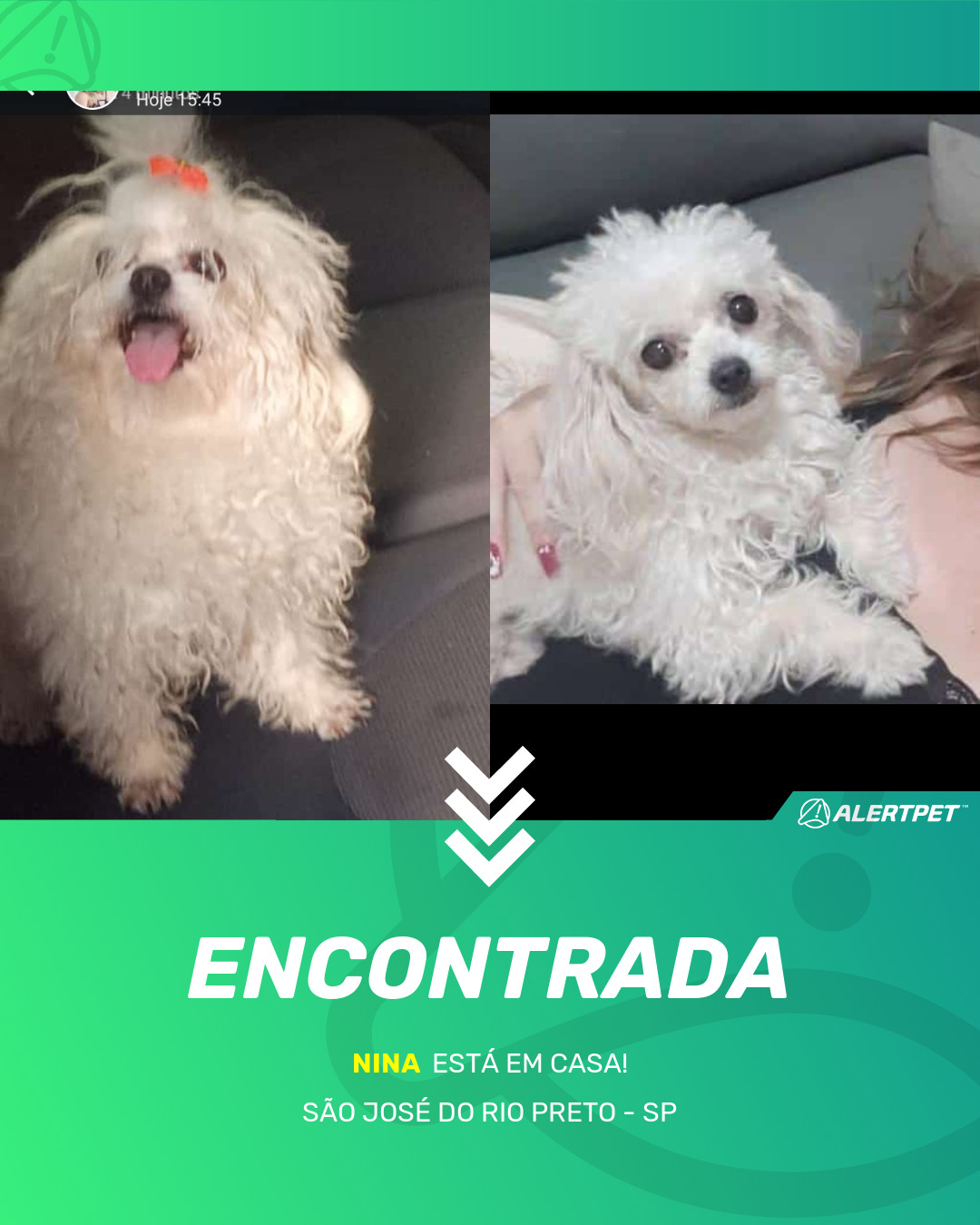 Depois de dois meses a cadelinha foi finalmente localizada graças a um anúncio da AlertPet