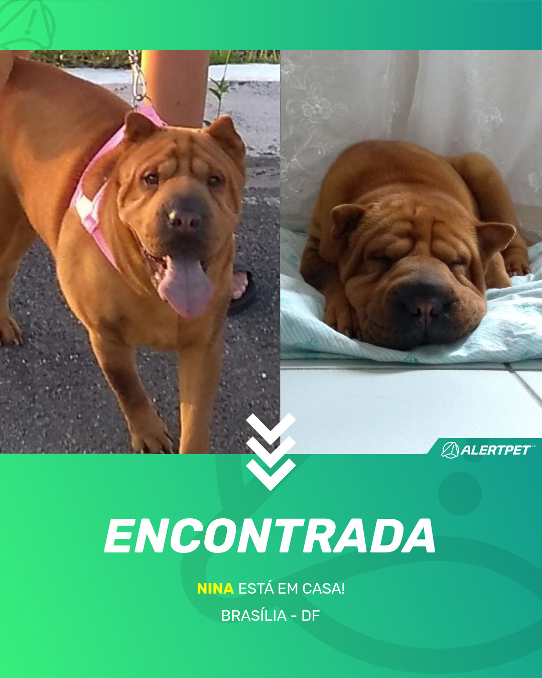 Depois de dois meses a cadelinha foi finalmente localizada graças a um anúncio da AlertPet