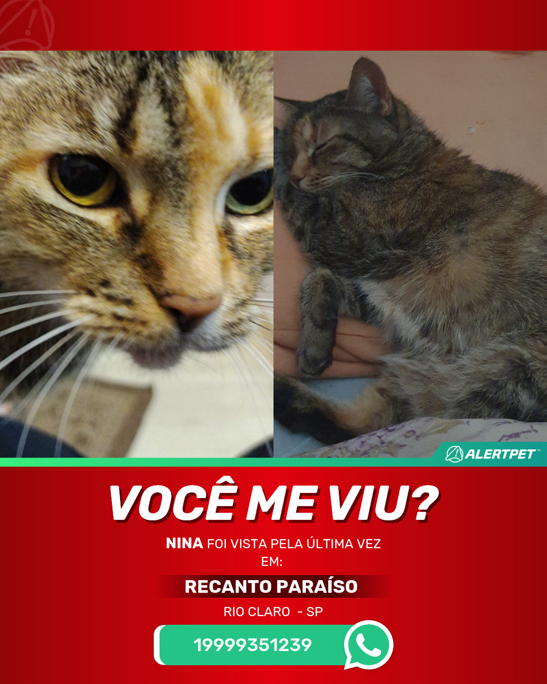 Gato Perdido Recanto Paraíso Rio Claro - São Paulo | Nina - 15 anos