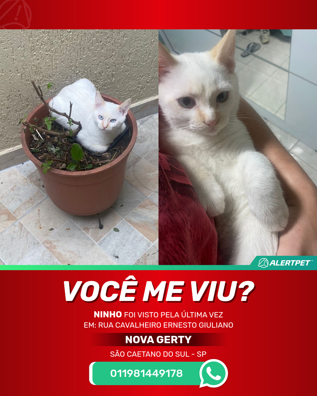 #AlertPet #Procurase #GatoDesaparecido #SAoCaetanoDoSul #ProcuramosNinho