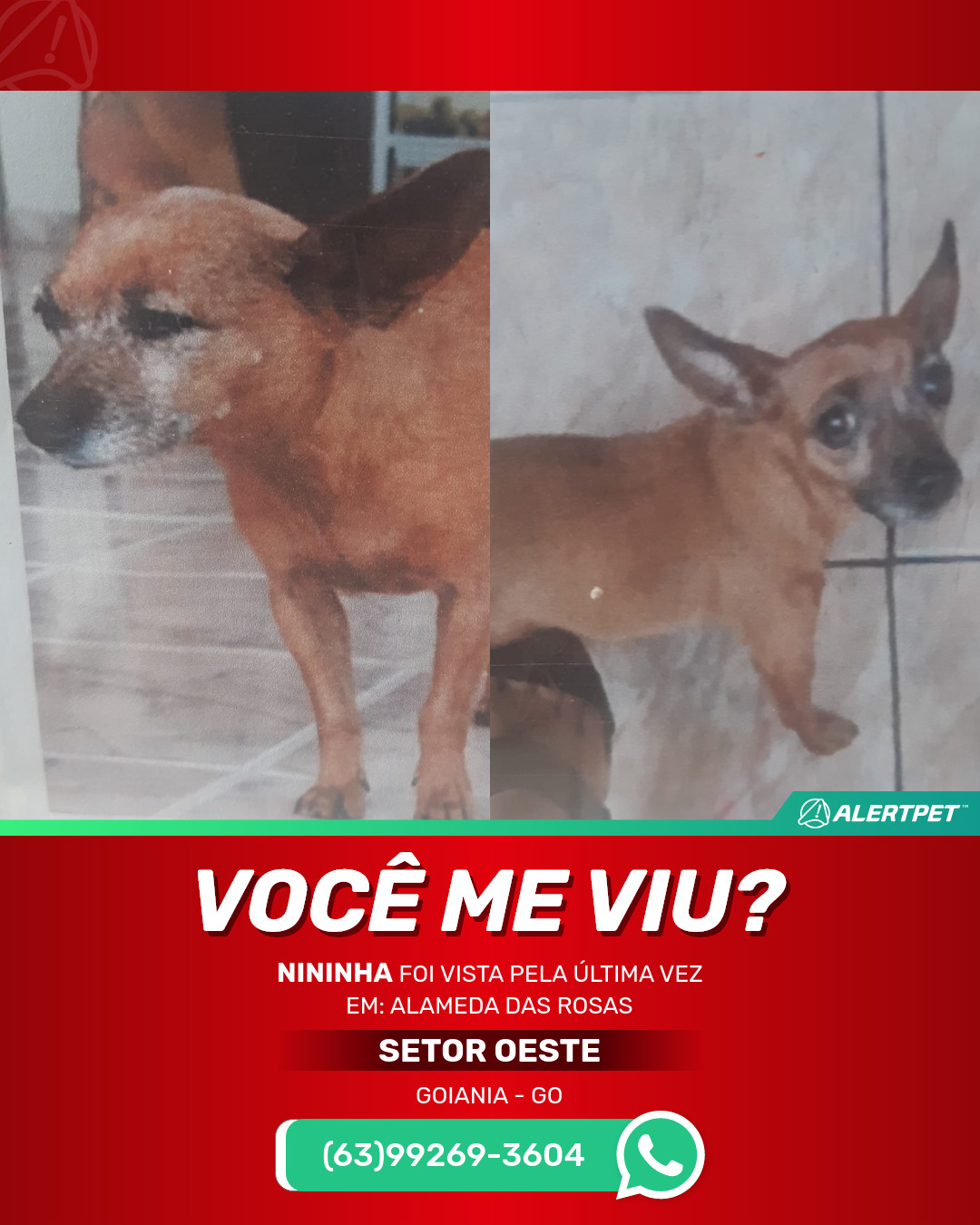 #AlertPet #Procurase #CachorroDesaparecido #Goiania #ProcuramosNininha