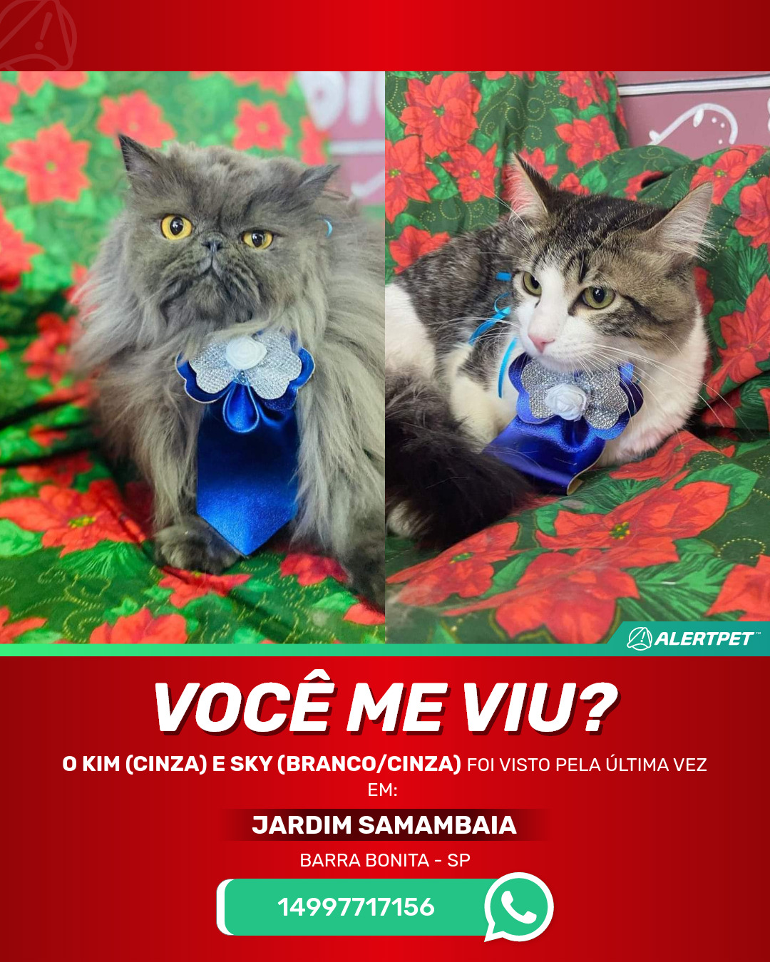 #AlertPet #Procurase #GatoDesaparecido #BarraBonita #ProcuramosOKim(cinza)ESky(branco/cinza)