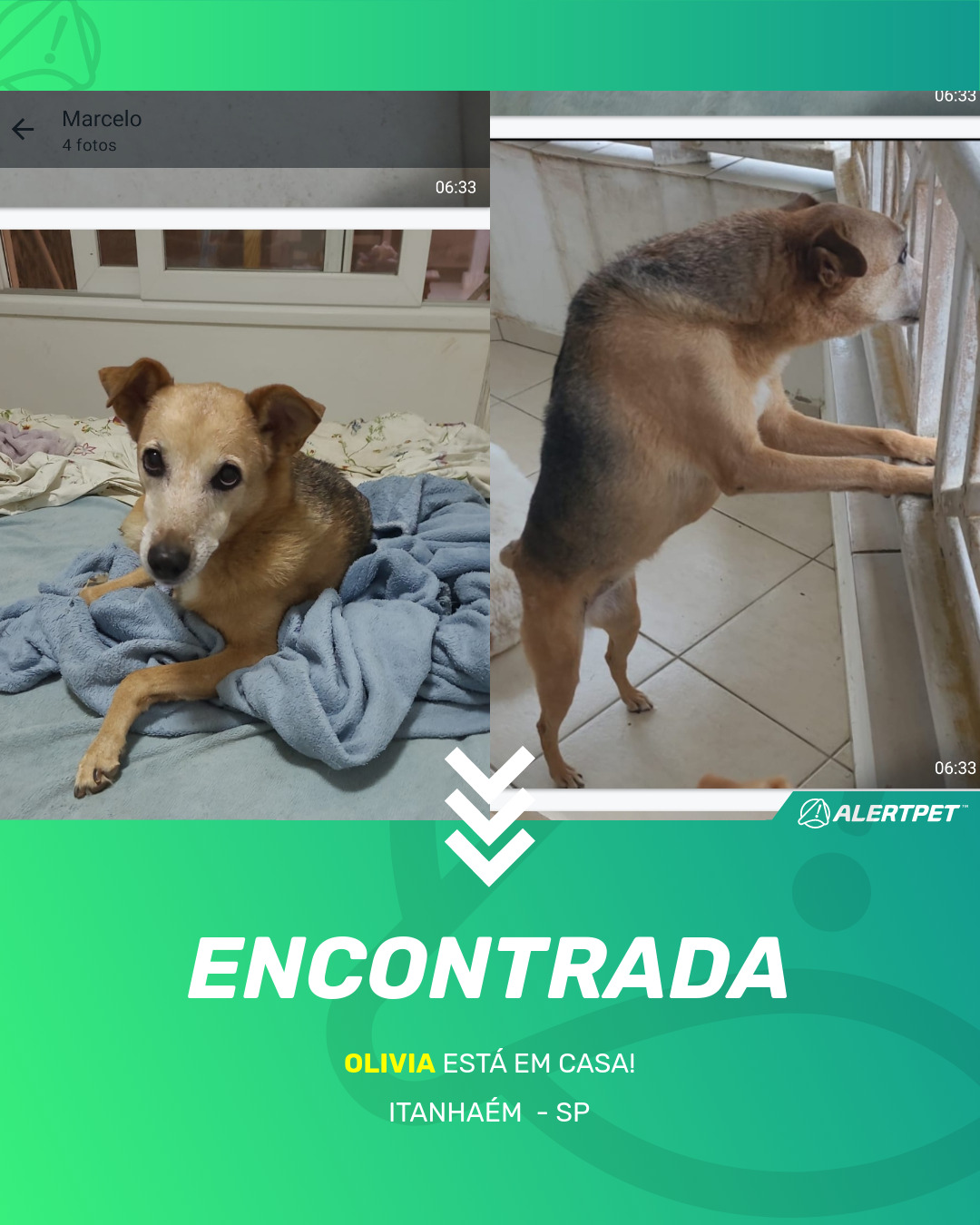Depois de dois meses a cadelinha foi finalmente localizada graças a um anúncio da AlertPet