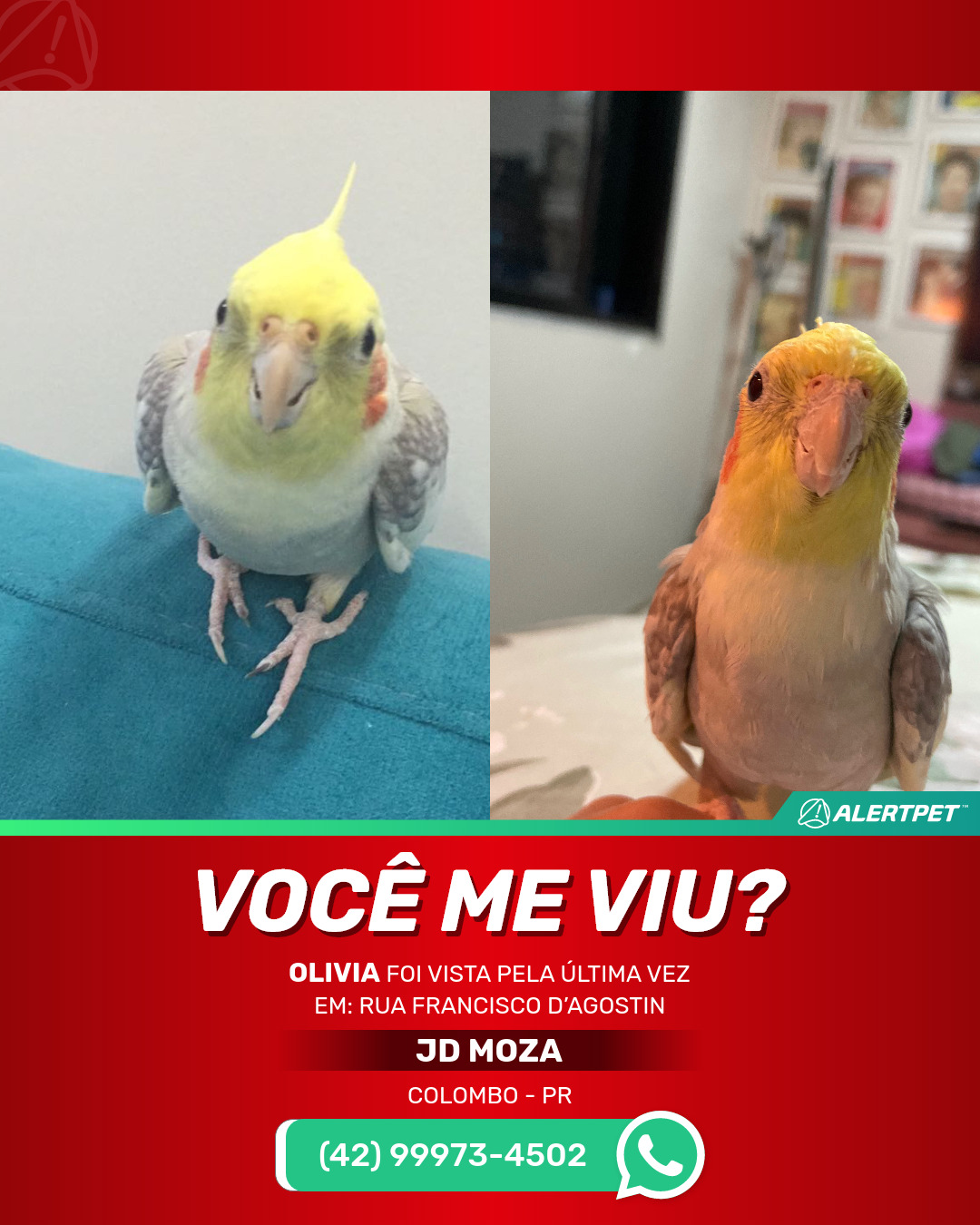 #AlertPet #Procurase #PassaroDesaparecido #Colombo #ProcuramosOlivia