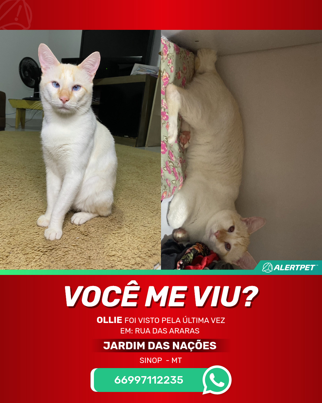 #AlertPet #Procurase #GatoDesaparecido #Sinop #ProcuramosOllie