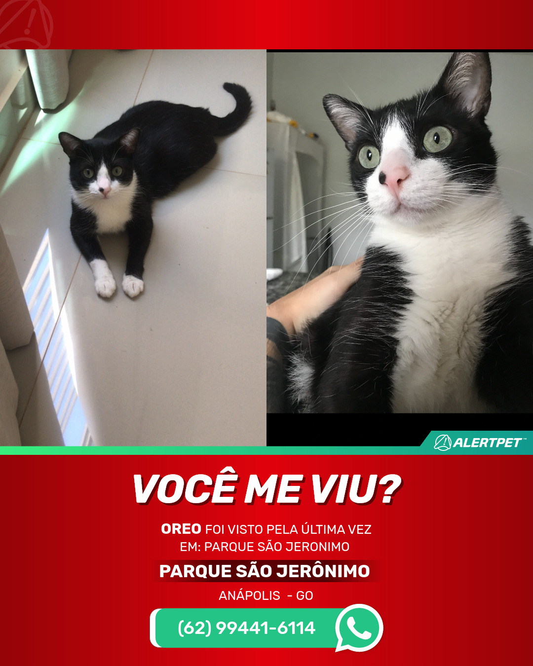 #alertpet #procurase #GatoDesaparecido #Anápolis #procuramosOreo