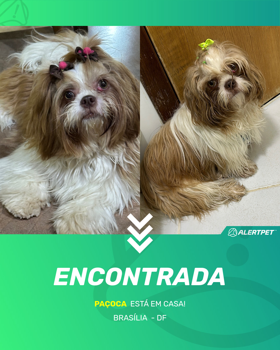 Depois de dois meses a cadelinha foi finalmente localizada graças a um anúncio da AlertPet
