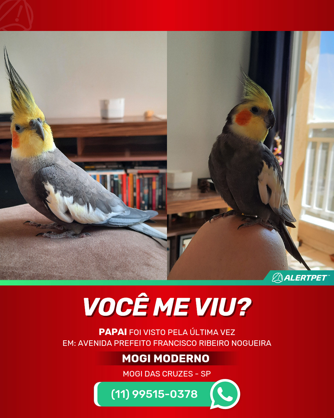 #alertpet #procurase #PássaroDesaparecido #MOGIDASCRUZES #procuramospapai