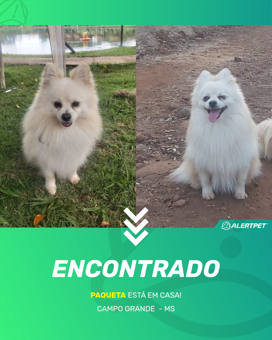 Depois de dois meses a cadelinha foi finalmente localizada graças a um anúncio da AlertPet