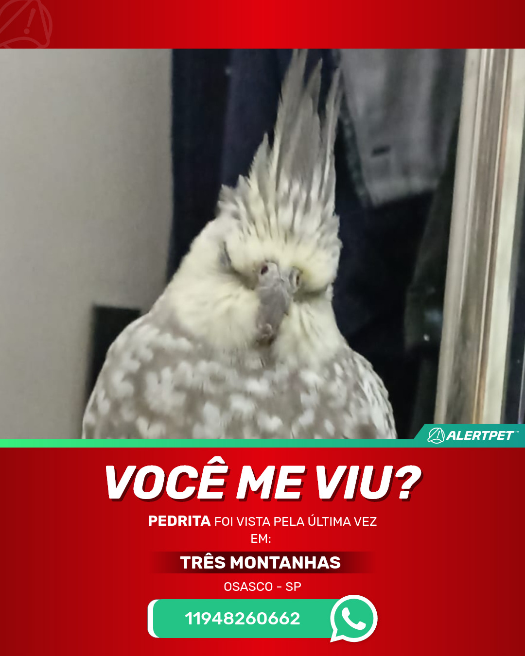 #AlertPet #Procurase #PassaroDesaparecido #Osasco #ProcuramosPedrita