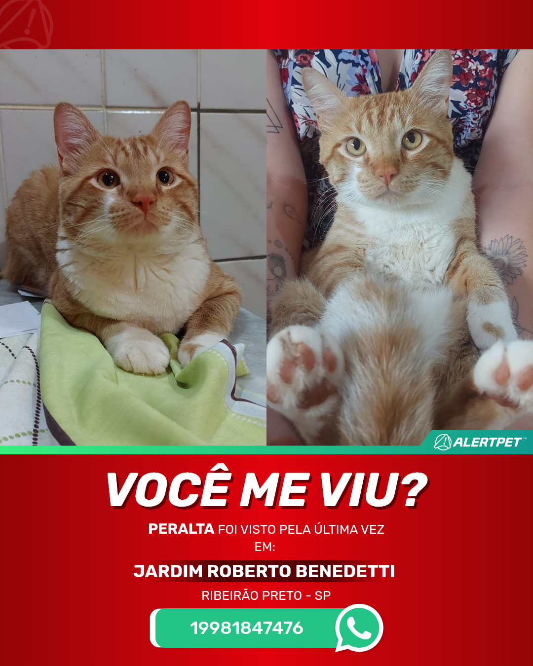 #AlertPet #Procurase #GatoDesaparecido #RibeirAoPreto #ProcuramosPeralta