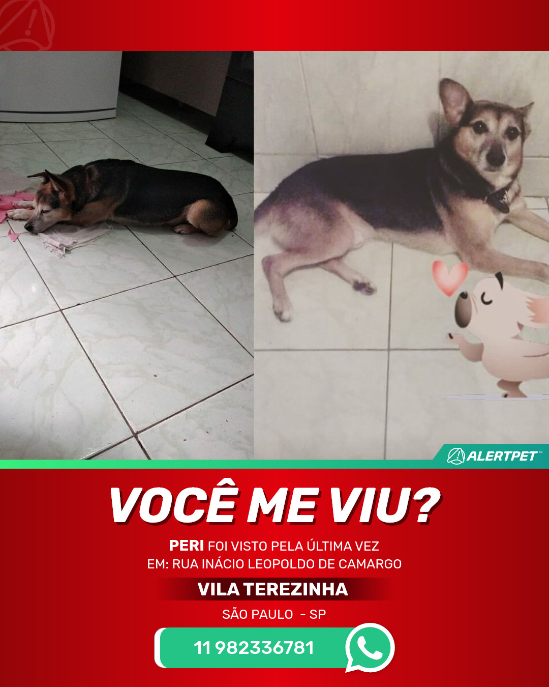 #AlertPet #Procurase #CachorroDesaparecido #SaoPaulo #ProcuramosPeri