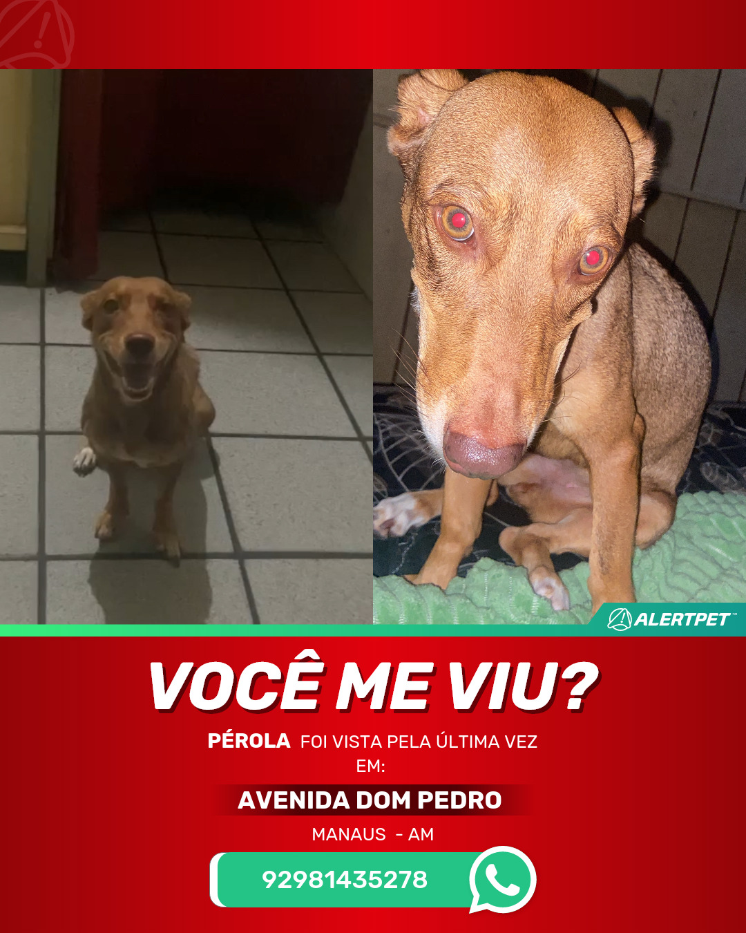 #AlertPet #Procurase #CachorroDesaparecido #Manaus #ProcuramosPErola