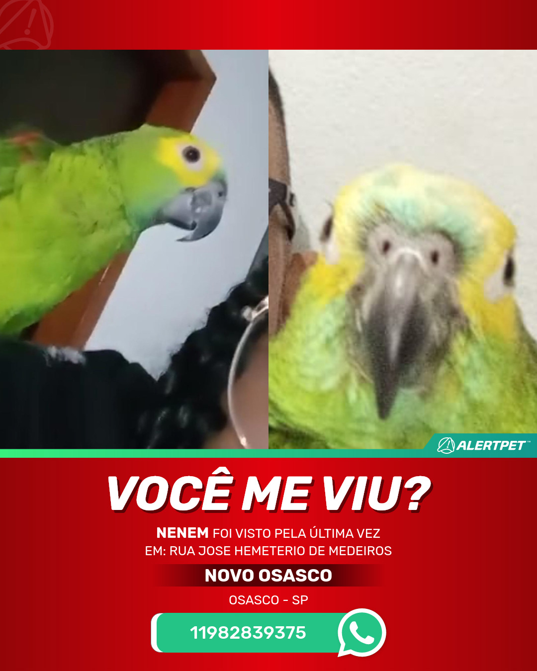 #AlertPet #Procurase #PassaroDesaparecido #SaoPaulo #ProcuramosPErola