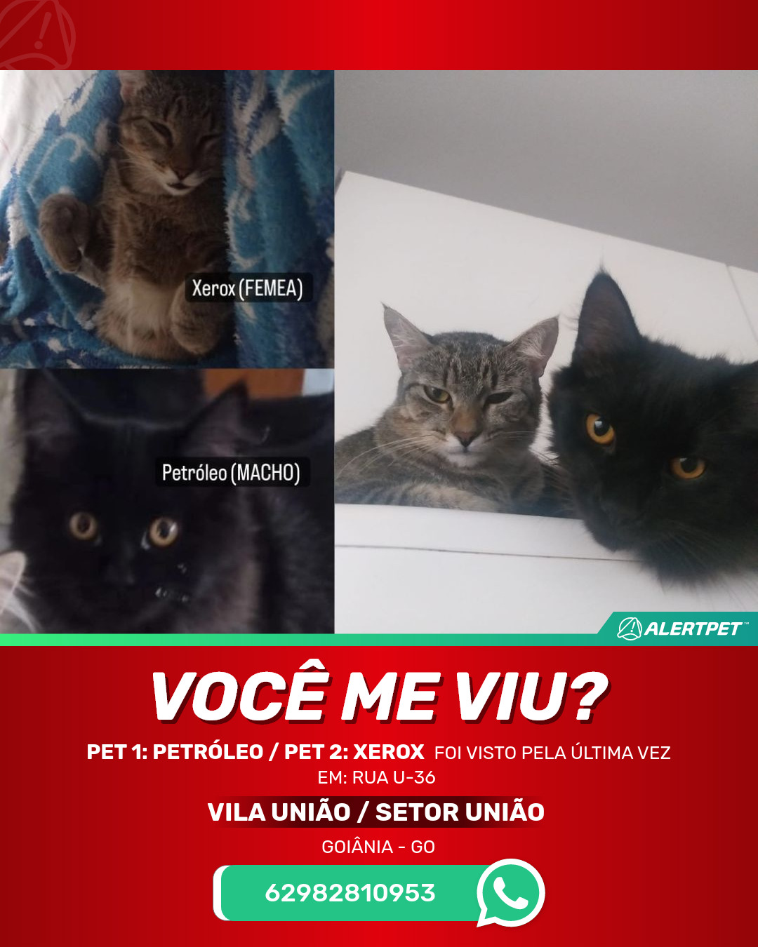 #AlertPet #Procurase #GatoDesaparecido #Goiania #ProcuramosPet1:Petroleo(macho)/Pet2:Xerox(femea)