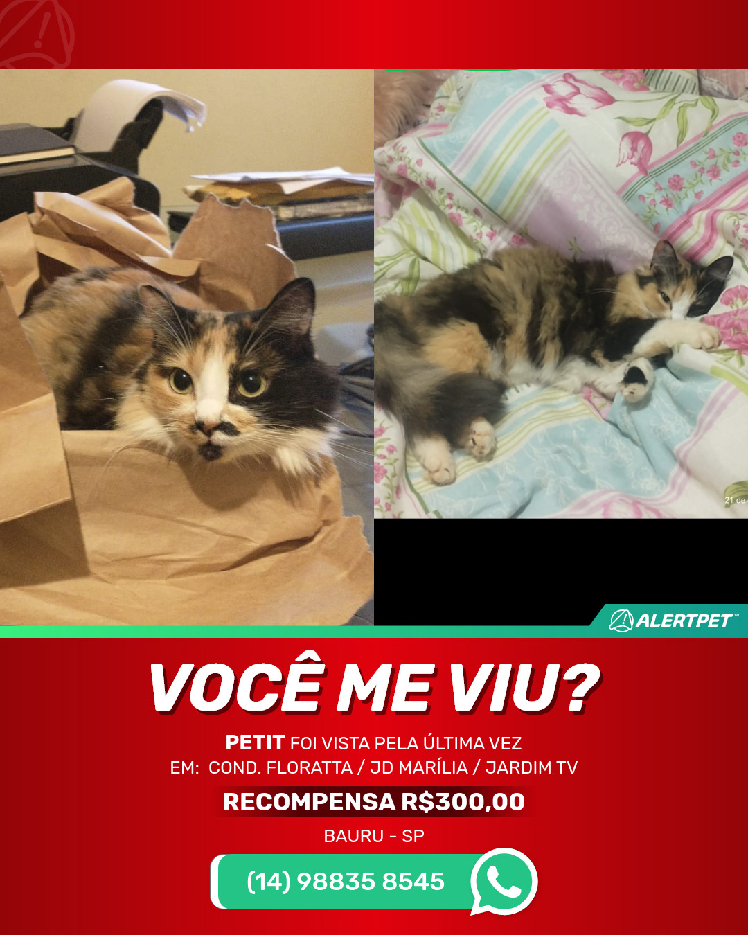 Gato Perdido RECOMPENSA R$300,00 Bauru - São Paulo | Petit -