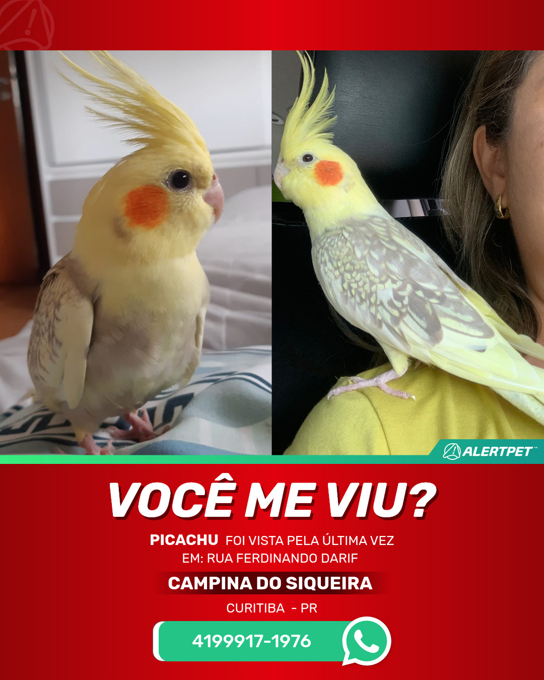 #AlertPet #Procurase #PassaroDesaparecido #Curitiba #ProcuramosPicachu