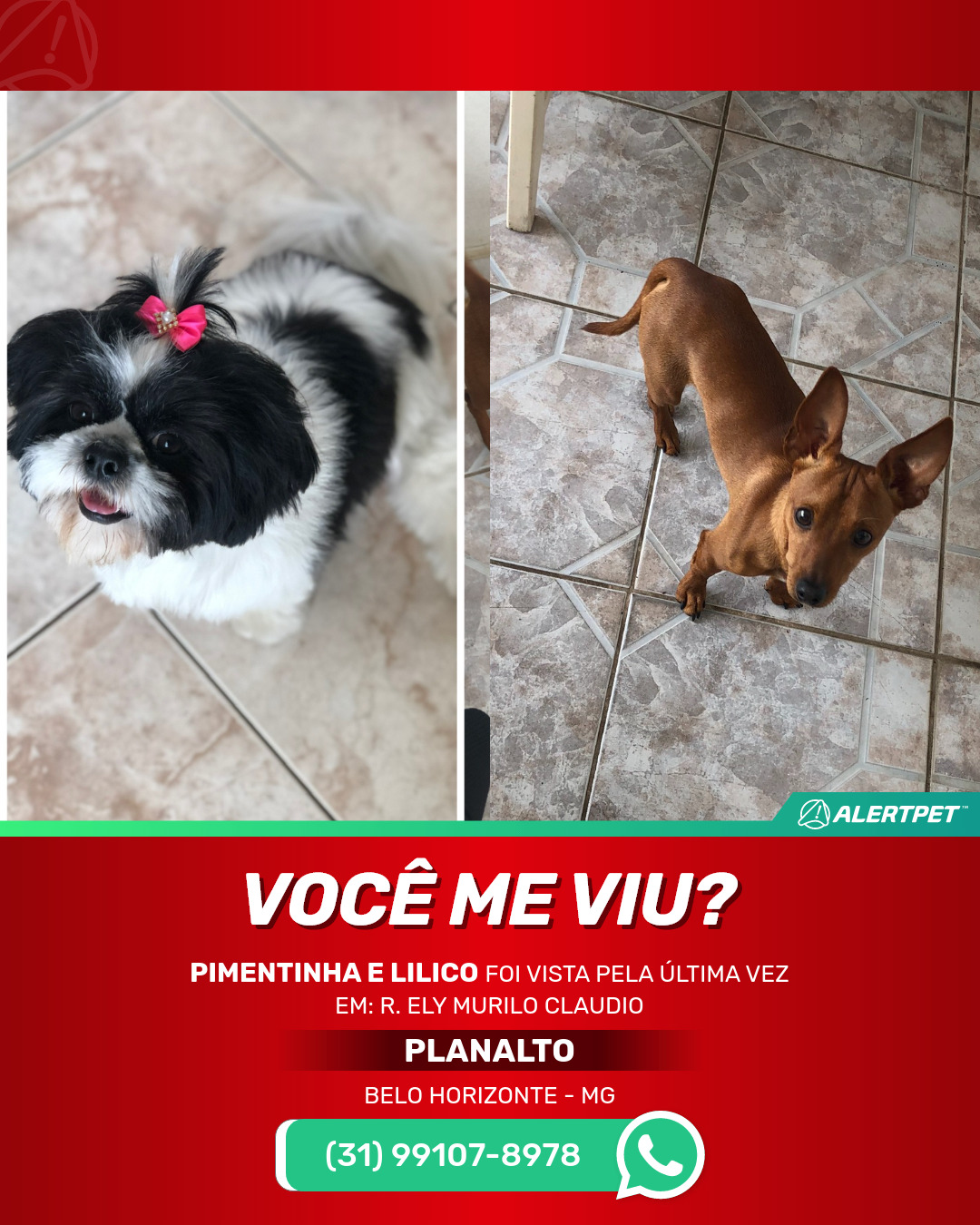 #alertpet #procurase #CachorroDesaparecido #Belo Horizonte #procuramosPimentinha e Lilico